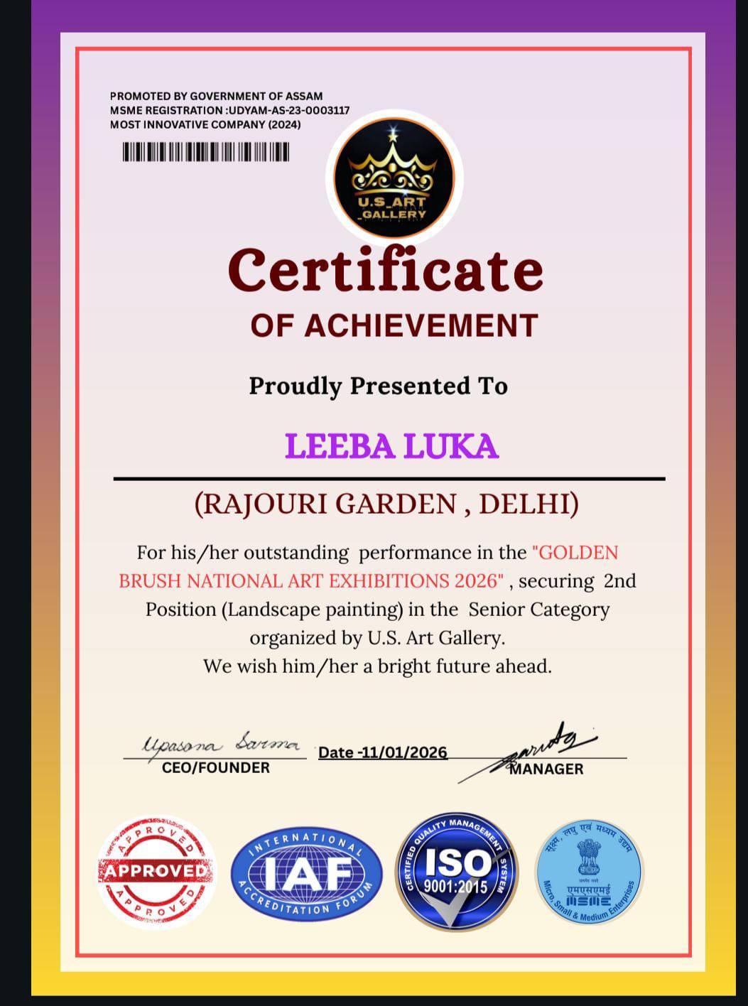 ->II nd prize- Leeba Luka, student at ArtShades