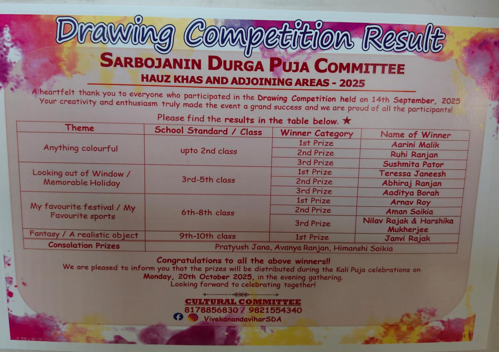 🎨️2025- Painting competition held at Durga pooja, Vivekananda vihar️